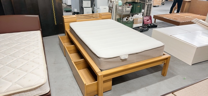 Set giường đôi m2 3 ngăn kéo cả đệm 115cm đầu có ổ cắm ngăn kéo vàng