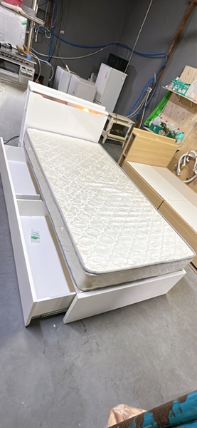 Giường đơn 2 ngăn kéo đầu có đèn ổ cắm trắng nitori