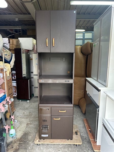 Tủ bếp sắt màu nâu gỗ 2 cánh 2 ngăn kéo có khay đong gạo